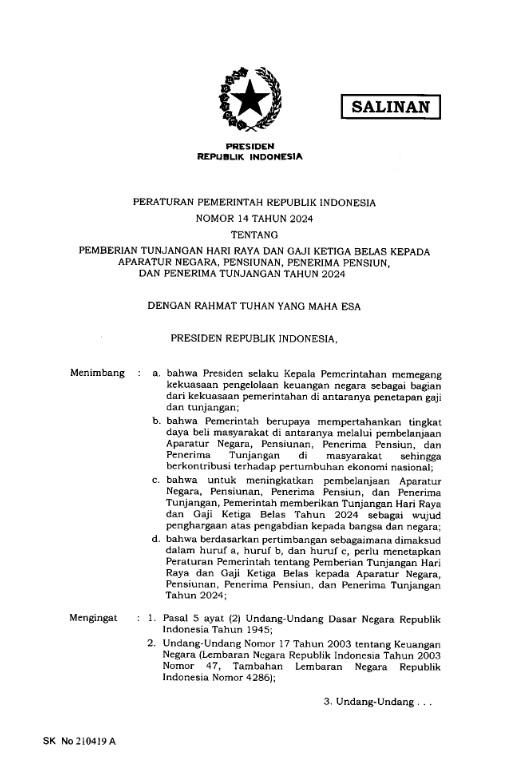 PP NMOR 14 TAHUN 2024 TENTANG PEMBERIAN TUNJANGAN HARI RAYA DAN GAJI 13 TAHUN 2024 Maret 13, 2024 Dapatkan link Facebook X Pinterest Email Aplikasi Lainnya Silahkan Download disini:PP Nomor 14 Tahun 2024 Komentar